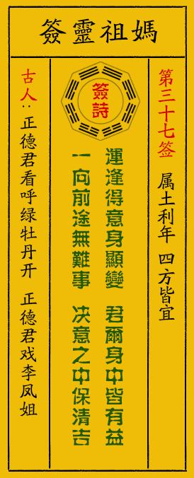 | 诗曰 | 运逢得意身显变、君尔身中皆有益、一向前途无难事、决意之中保清吉。 |